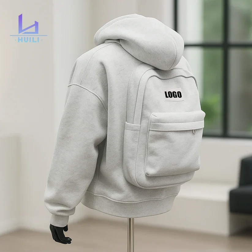 Huili Oem New Trending Unisex Cotton Solid Color Vintage Zip up Hoodie Winter Jacket Custom logo Women's Fleece Backpack Hoodie